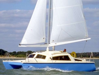 Obwohl es kaum zu glauben ist, sind (waren) in dieser Größenklasse auch bereits Boote mit überbautem Brückendeck zu haben. Sie boten erstaunlich viel Wohnraum, allerdings darf man an die Segelleistungen keine besonderen Ansprüche stellen. Zu nennen sind hier die erst wieder neu aufgelegte HIRONDELLE MKII, der nicht mehr gebaute PROUT 26 oder die HEAVENLY TWINS. Mit letzterer wurden sogar schon Weltumsegelungen gemacht. Leider geht der Trend bei den Werften immer mehr in Richtung große Charterboote, so daß kleine Fahrtenkatamarane als Serienboote praktisch vom Markt verschwunden sind.