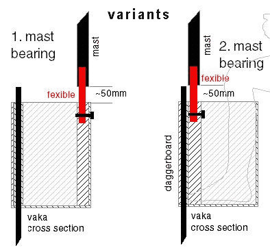 - The mast mount must be flexible, because the mast bends itselfs while shunting. You can use a surf mast connector or cheaper - a piece of a strong hospipe which is glued into the mast and bolted into the mount.