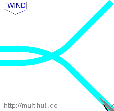 5. Das Boot segelt wieder auf "Am-Wind" Kurs.