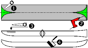 Es kann von auflaminierten Schaumstoffblöcken reichen, bis hin zu Sperrholz-Stützen, die am Rohr anlaminiert sind oder auch im Rohr versenkt werden können. Prinzipientreuer wäre es natürlich, eine Art T-Rohr in den Rumpf zu integrieren, in den die Akas nur eingesteckt werden, wie ein Ast, der aus dem Baum wächst. Zusammengehalten würde die Steckverbindung durch das Trampolin oder andernfalls durch simple Laschings.