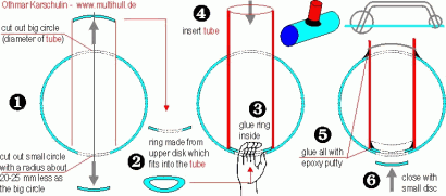 Der Form des Baumes, der mühsam ausgehöhlt wurde, kommt das einfache Rohr am nächsten. Lang, schmal, mit optimalem Querschnitt und in allen Größen und Längen zu haben - und bereits hohl! Wenn man sich allerdings die Enden betrachtet, wird der "Einbaumgedanke" getrübt. Wo nichts ist, kann man auch nichts hinschnitzen, einen Bug nämlich. Aber Dank globalem Bewußtsein fallen einem die Japaner, bzw. deren Origami ein: Die Kunst des Faltens.