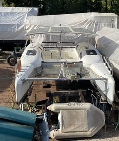 Im Steuerbord-Rumpf (Stehhöhe) weitere Doppelkoje, Hundekoje, WC u. Waschbecken mit Handbrause