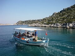 Um 17:00 Uhr herum sind aber wieder alle am Steg beim "Sailors House" in Bozzukale versammelt. Als kleines Schmankerl wird eine Bootstour zur Burgruine (bozzuk=kaputt, kale=burg) angeboten, die dann auf kurzem Wege erklommen werden kann. Das gute Abendbüffet folgt wie gewohnt. | |
