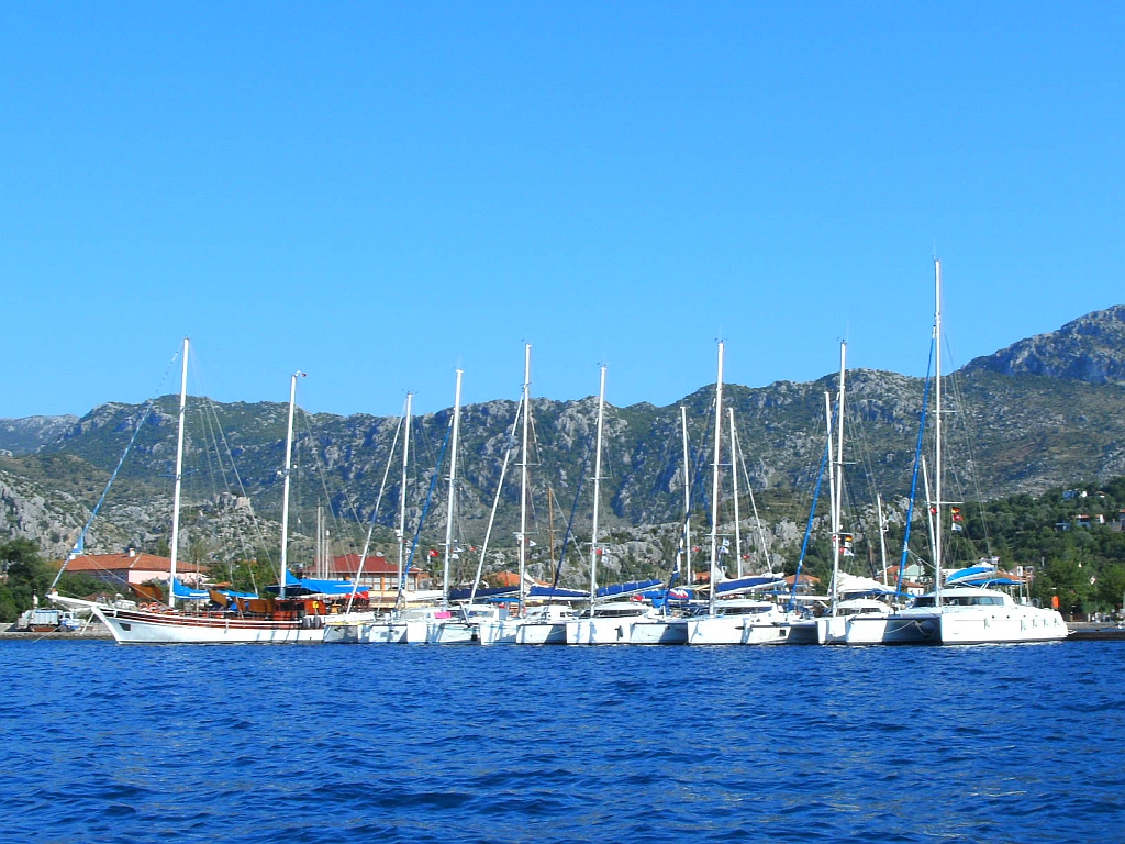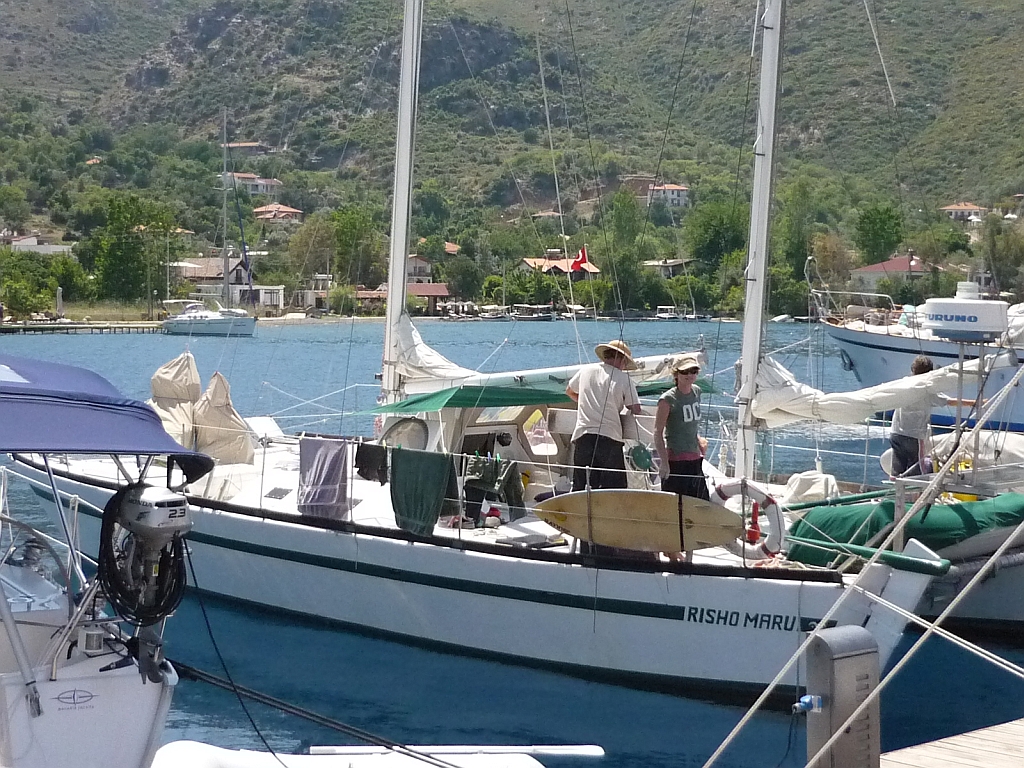 Nach kurzer Teepause und eifrigem Souvenirkauf im gut ausgestatteten Laden ging es zurück nach Selimiye. Liebe Freunde von der "Risho Maru", gerade von einer vierjährigen Weltumsegelung zurückgekommen, begleiteten uns auf der nächsten Etappe. Da gab es natürlich viel zu erzählen und zu bestaunen. Ihr Weg führt weiter nachhause in die Adria. |