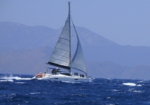 Der nächste Regattatag war den Launen des Windes unterworfen. Gab es schon auf der Hinfahrt zwischen der Bozburun-Halbinsel und der Insel Simi einen Kreuzkurs, hatten wir auf der Rückfahrt dasselbe Vergnügen. Auch im weiteren Verlauf der Regatta machten Winddrehungen die Kurswahl zum Glücksspiel. So waren diesmal die letzten Boote die Glücklichen, die in der zweiten Hälfte der Strecke statt eines Kreuzkurses, das Kap Karaburun auf einmal direkt ansteuern konnten. |