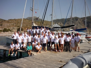 Am ersten Abend beim Eröffnungs-Cocktail im Restaurant der Albatros Marina in Marmaris gab es ein großes "Hallo", da sich doch bald die Hälfte der Anwesenden vom letzten Jahr her kannten. Aber auch viele neue Gesichter waren zu sehen, darunter die englische Crew der "Rough Boy" oder das große schweizer Kontingent, womit sich sieben Nationen bei der diesjährigen Regatta zu einer schöne Segelwoche trafen. Der erste Regattatag führte vom Kap Kadirga vor der Einfahrt zur Bucht von Marmaris nach Bozzukale am Ende der Bozburun-Halbinsel. Das Wetter hatte sich nach einem kurzen abendlichem Nieselregen wieder beruhigt und es gab genug Wind, um den Kurs mit einigen Kreuzschlägen abzusegeln. Wie so oft war die Outremer 45 "Come Beck" lange vor Allen im Ziel, aber auch der Letzte konnte noch am späten Nachmittag am Steg vor "Sailors House" festmachen. So blieb bis zum leckeren Abendessen noch genügend Zeit für die ersten Kontakte zwischen den Crews. | |