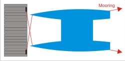 Steht ein Katamaran in einer Box (in die er gerade noch reinpaßt) ist es sinnvoll die Leinen von den Bügen und den Hecks jeweils überkreuz zu den Pollern, bzw. Dalben zu führen. Dadurch wird die Leine verlängert und man kann z.B. der Tide geruhsamer entgegensehen.