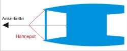 In jedem Fall sollte ein Katamaran mit einem an die Kette einhängbaren Hahnepot mittig festgemacht sein. Dazu den Anker ausbringen, einfahren, Hahnepot mit Kettenkralle einhängen, Ankerkette an Winsch nachlassen bis der Zug auf dem Hahnepot liegt.