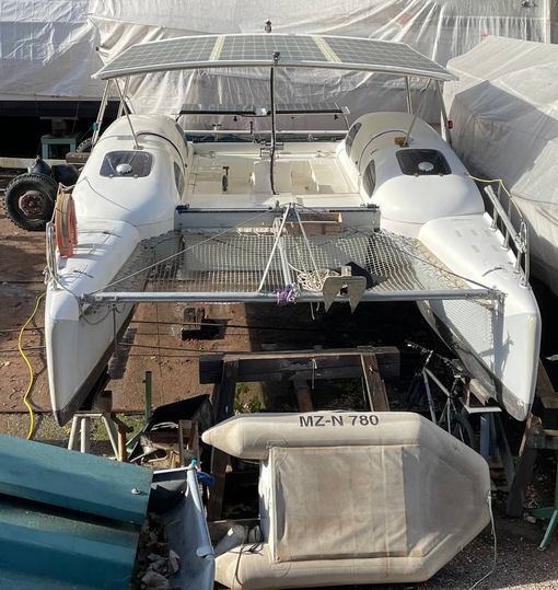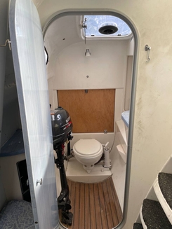 Im Steuerbord-Rumpf (Stehhöhe) weitere Doppelkoje, Hundekoje, WC u. Waschbecken mit Handbrause