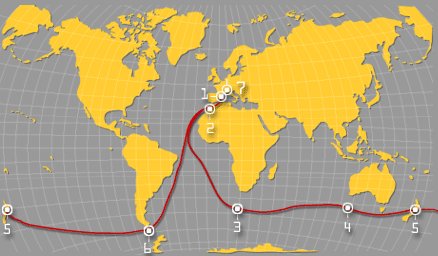 Start am 29 Februar 2004 in Marseilles. Der Kurs beleibt der "alte" rund um die drei Kaps. Distanz ca. 23 300 nautische Meilen (mehr als 43 000 Kilometer)