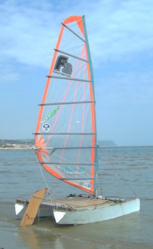 Die beiden Katamarane hingegen überzeugten nicht. War der eine einfach zu plump gebaut (er dient sonst mehr als Badeplattform für Kind und Kegel) hatte der andere Multihull große Probleme mit dem Surfrigg.