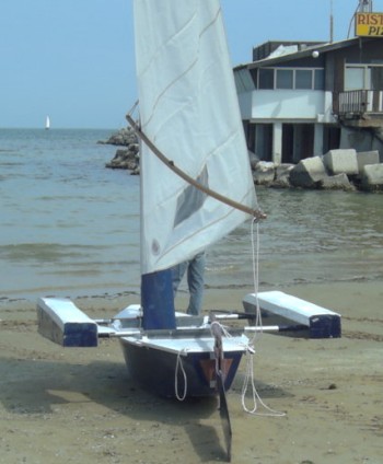Am 17. Mai war es soweit. Nach langjährigem Kontakt per Internet mit Luigi Scarnicchia von "Il cantierino", dem E-Zine der italienischen Selbstbauer und dem Organ der 19 Fuss-Klasse war ich nach Fano eingeladen. Und so ging es an einem heißen Freitag die 800 km in den Süden. Zuerst zu meinem Freund Mario Marti, der sich auch in der italienischen "Szene" engagiert. Er hatte für mich alles vorbereitet und auch die 5 m Proa (siehe P5) bereits auf seinem Trailer nach Italien heruntergezogen. Es sollte der erste Ausflug damit ins Salzwasser werden.