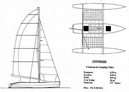Die mediterrane Mehrrumpfboot-Szene macht diskret, aber sicher ihren Weg. Als Designer und Herausgeber einiger kleiner Trimarane, die speziell an den Küsten des Languedoc- Roussillons segeln (wie Calibre 23 oder der Prototyp Port-Lligat-Airlines), hat Philippe Rivière die Gelegenheit, die durch diesen Wettbewerb angeboten wurde, genutzt, um einen kleinen multihull als Entwurf zu Papier zu bringen.. Er stellte sich vor , daß - je nach Anspruch - die sonntägliche Regatta im heimatlichen Revier oder auch die Umrundung von Korsika in der schönen Saison möglich sein sollte.