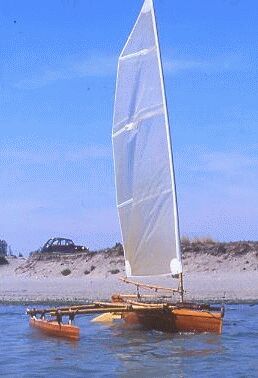 Es gibt bisher, gegenüber den dreibeinigen Freunden, kaum klappbare Katamarane. Dabei drückt den Kat-Besitzer letztlich auch die Breite seines Bootes, wenn es um Transport und Liegeplatz geht. Die üblichen konstruktiven Angebote ließen bestenfalls ein Zerlegen zu, was bei Bootsgrößen über 6 Meter immer zu gröberen Aktionen ausartet. Kelsalls Antwort darauf heißt AmKat. Letztlich ist es natürlich keine neue Erfindung, aber eine Idee wurde konsequent durchkonstruiert und auch gebaut! In seinen Designüberlegungen gibt sich Kelsall aber nicht mit dem Klappmechanismus alleine zufrieden, er versucht eine Brücke zum Land zu schlagen und dem Boot amphibische! Funktionen zu verleihen. Jeder hat vielleicht schon mal ein Dinghi mit integrierten Laufrädern gesehen, damit es sich leicht an Land verräumen läßt - aber an einem 20 oder 26 Fuss Klapp-Katamaran, dass ist echt neu. Der Klappvorgang dauert mitttels eines einfaches Handkurbelsystems beim Prototyp ca. eine Minute und kann im Wasser erfolgen. Während des Aufklappvorgangs wird die Plattform zwischen den Rümpfen nur um max. 5 Grad gekippt, das Bierglas bleibt also stehen. Der Prototyp wurde als einfacher "Platformkat" gebaut, der sich unter Motor fortbewegt. Der Umbau zur Segelvariante mit Aerorigg und Karbonmast ist im Gang.