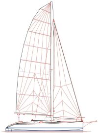 Für die Freunde der 3-beinigen Multihulls wird der 9,5 m lange und 7,9 m Breite Trimaran in Sandwichbauweise interessant sein. Auf eine Breite von 2,55 Meter zusammenklappbar, soll er die Trailerszene bereichern. Mit seinem drehbaren Profilmast kommt das Boot auf über 75 qm Segelflläche, was zu einem Verhältnis von ca. 30 qm pro Tonne führt. Das verspricht Tempo, mit immerhin 3-4 Schlafplätzen und einem abgeschlossenen WC-Raum.