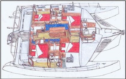 Der bereits produzierte 11 m Trimaran Normanni 34, bewegt sich erwiesener- maßen an die 20 Knoten Marke heran und ist somit durchaus als sportlich einzustufen. Seine Segelbreite von knapp 8,5 m läßt sich im Hafen auf praktikable 3,8 m zusammenklappen. Neu vorgestellt wird (noch auf dem Reißbrett) die komfortable Normanni 40. Ältere Semester unter den Multihullern werden in der Raumaufteilung durchaus Ähnlichkeiten mit den bekannten Modellen von Normann Cross finden.Diese oft 20 Jahre alten Boote erfreuen sich noch heute bei der Charterei großer Beliebtheit.