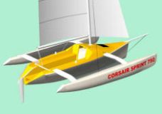 Der Corsair Sprint 750 ist die brandneue Ergänzung der Corsair Produktlinie von trailerbarenTrimaranen. Auf dem bewährten Corsair 24 basierend, bietet das neue Boot jede Menge Performance und Spass wie mit einem Beach-Katamaran, aber ohne dessen Unannehmlichkeiten. Eine kleine Kabine und die Option das geschützes Cockpit mit einem Verdeck zu schließen, lasse auch kleinere Urlaubsfahrten zu. Die einfache Trailerbarkeit, das simple Aufriggen und das Slippen auf jedem Strand sollten dazu beitragen, den kleinen Trimaran zu einem Spassboot erster Klase zu machen. Vor allem aber ist der Einführungspreis für einen USA-Import interessant: US $ 49.000,-. Weitere Infos auf der Homepage von Corsairmarine.