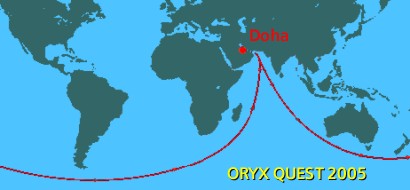 (06.02) Im Anstand von wenigen Sekunden gingen in Doha die vier Wettbewerbsteilnehmer über die Startlinie. Vor den 45 Seglern liegen ca. 23.000 Seemeilen und ca. 2 Monate hartes Segeln rund um die Antarktis und zurück in die Wüste. Die Teilnehmer sind: Daedalus (ex ENZA, Kat mit Skipper, Tony Bullimore, UK), Doha 2006 (es Club Med, Kat mit Skipper Brian Thompson, UK), Cheyenne (ex Playstation, Kat mit Skipper David Scully, US) und Geronimo (Tri mit Skipper Olivier de Kersauson, FR).