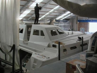 Ich hatte sicherheitshalber auch ein Alternativprogramm, um zeitgerecht ins Wasser zu kommen. Ein Gitter A-Mast aus Nirorohren. Nur rund 50kg schwerer als die Carbonversion, leicht besteigbar, einfach zu verkabeln, optimaler Blitzschutz, geringer Luftwiderstand und ca 90% günstiger im Preis. Sind das nicht Argumente? Allein die Optik ist etwas ungewohnt, wir hätten wahrscheinlich die schnellste Bohrinsel der Welt gehabt. Ich möchte aber auf alle Fälle so ein Rigg einmal bauen, Zeichnungen und Berechnungen sind schon abgeschlossen. Der Konstrukteur dieses genialen Konstruktion ist DI Bernhard Tiedemann www.beti.de. Die Bulgaren werden so einen Mast sicher bald bauen, weil Aluprofile sind dort absolute Mangelware.