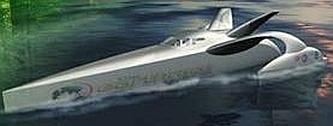 Manche Staaten unterschreiben das Kyoto-Protokoll, andere brauchen einen 78 Fuss Wave-Piercing Trimaran, um für den Umweltschutz zu werben. Und so muss das futuristische Ungetüm, halb Motorboot, halb U-Boot herhalten, seinen Durst für das "Weltrennen" mit Bio-Diesel zu stillen. Natürlich braucht es dafür Geld, und so muss vor dem Rekordversuch schnell um die Welt zu fahren, schnell um die Welt promotet werden. Wer will kann Ende der Woche in New York für $ 5,- an Bord gehen.