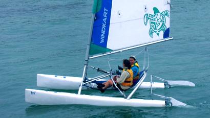 Das Konzept des neuen Fun-Gerätes ist ein Segelgefühl ala Autofahren. Das heißt beide "Piloten" sitzen im Gestühl mit Blickrichtung nach vorne. Es ist also schonend für die Halswirbel - wie es aber mit dem Ausreiten aussieht? Wer sich für den WindKart interessiert kann ihn sich auf dem Salon Nautique de Paris