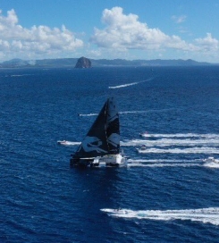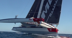 Jules Verne Trophy, Drohnen-Video (2:00 min): Segeln mit 35 Knoten im Sonnenuntergang bei Madeira.