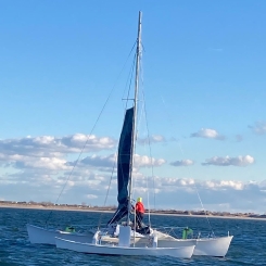 Ryan Finn hat es geschafft. Er segelte mit der 11,3 m langen Proa "Jzerro" von New York via Kap Hoorn nach San Francisco.