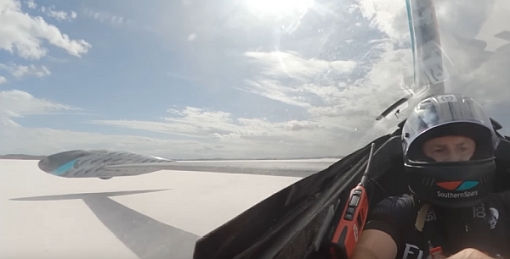 Das Landspeed-Project von Emirates Team New Zealand erreicht auf dem Lake Gairdner die 200 km/h-Marke.