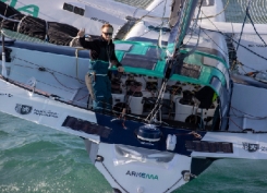 - Der Ocean Fifty vom Thibaut Vauchel-Camus "Solidaires en Peloton-ARSEP" ist gekentert, Skipper wohlauf.