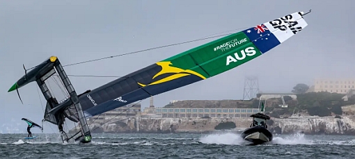 22. März: Das australische SailGP-Team kentert beim Training in San Francisco, glücklicherweise wurde niemand verletzt.