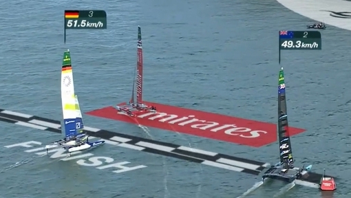 SailGP: Burling erreicht knapp 53 Knoten (97 km/h) beim Training in Auckland. Das läßt auf extrem schnelle Rennen beim kommenden Event schließen.