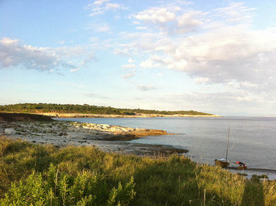 We sailed out of the bay the way we had come, then turned east and north, following the coastline east of the southern cape of istria . The wind had dropped a lot, and In the afternoon we found a nice beach with a comfortable lawn above, fore a change on the mainland, Again we didn' t build a tent, but slept peacefully under the stary sky.