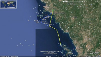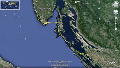 Here the GPS track from Rovinj to Zadar. The Program interpreted the "switch off times " with straight lines between the last and next "switch on time"