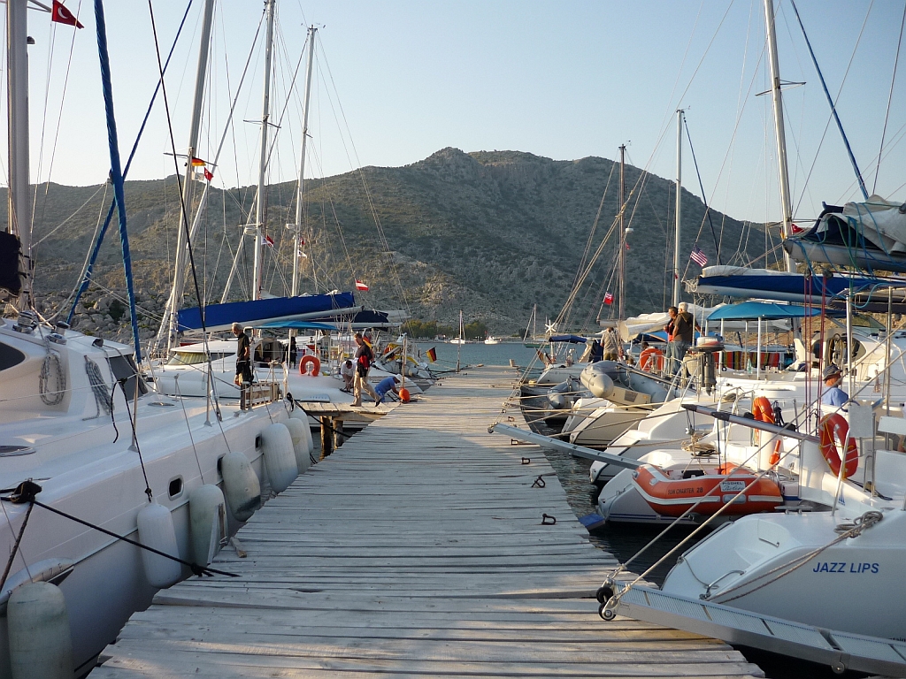 Nach kurzer Teepause und eifrigem Souvenirkauf im gut ausgestatteten Laden ging es zurück nach Selimiye. Liebe Freunde von der "Risho Maru", gerade von einer vierjährigen Weltumsegelung zurückgekommen, begleiteten uns auf der nächsten Etappe. Da gab es natürlich viel zu erzählen und zu bestaunen. Ihr Weg führt weiter nachhause in die Adria. |