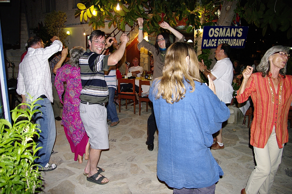 Selbst der Bürgermeister ließ es sich nicht nehmen, uns alle in Selimiye Willkommen zu heißen. Der Höhepunkt des Abends war jedoch unsere Life- musik, die zu späterer Stunde fast alle zum Tanzen brachte. So übermannte es bald auch unsere türkischen Freunde und sogar den Koch, uns in originale Tänze einzuführen. Auch der Bürgermeister erschien nochmals, um mit uns das Tanzbein zu schwingen. |