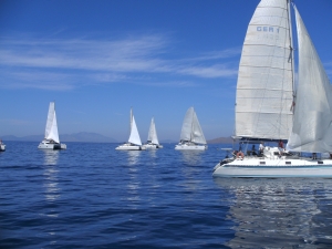 Der nächste Regattatag war den Launen des Windes unterworfen. Gab es schon auf der Hinfahrt zwischen der Bozburun-Halbinsel und der Insel Simi einen Kreuzkurs, hatten wir auf der Rückfahrt dasselbe Vergnügen. Auch im weiteren Verlauf der Regatta machten Winddrehungen die Kurswahl zum Glücksspiel. So waren diesmal die letzten Boote die Glücklichen, die in der zweiten Hälfte der Strecke statt eines Kreuzkurses, das Kap Karaburun auf einmal direkt ansteuern konnten. |