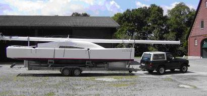Multihulls sind durch ihre Geometrie nicht gerade prädestiniert zum Trailern, aber bis zu einer gewissen Größe lassen sich sogar Fahrtenboote mit akzeptablem Aufwand bewegen. Der Klapp-Trimaran hat hier naturgemäß die besseren Karten, aber sogar große Katamarane ohne festes Brückendeck lassen sich zumindest für einen Revierwechsel transportfähig machen. Das hierbei auch Dimensionen an die 11 Meter möglich sind, wurde in den "multihull news" im Januar mit der Vorstellung des 36 Fuss-Faltkatamarans "Cat2Fold" gezeigt.
